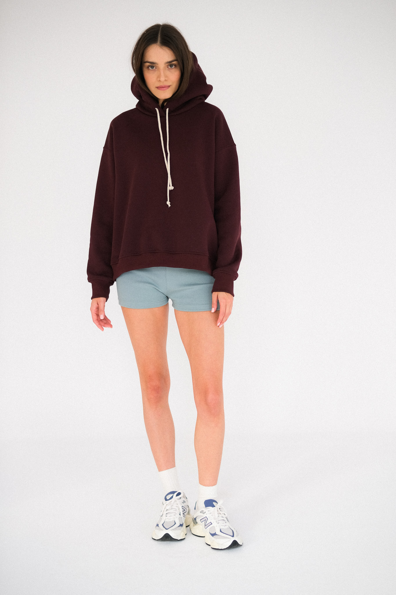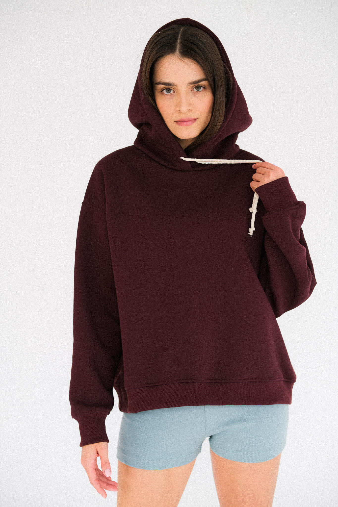 Delikatnie oversizowa bluza MELBOURN, uszyta jest z jakościowej dresówki, z misiem w środku. Materiał jest mięsisty i pięknie trzyma formę. Bluza wykończona jest ściągaczem. W kaptur wciągnięty został bawełniany, beżowy sznurek.