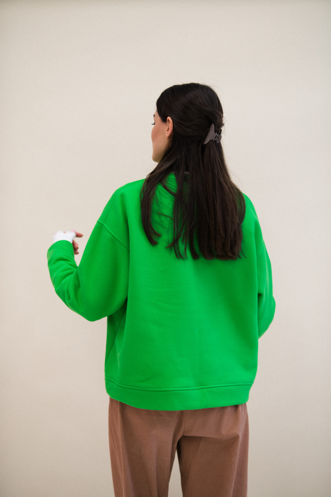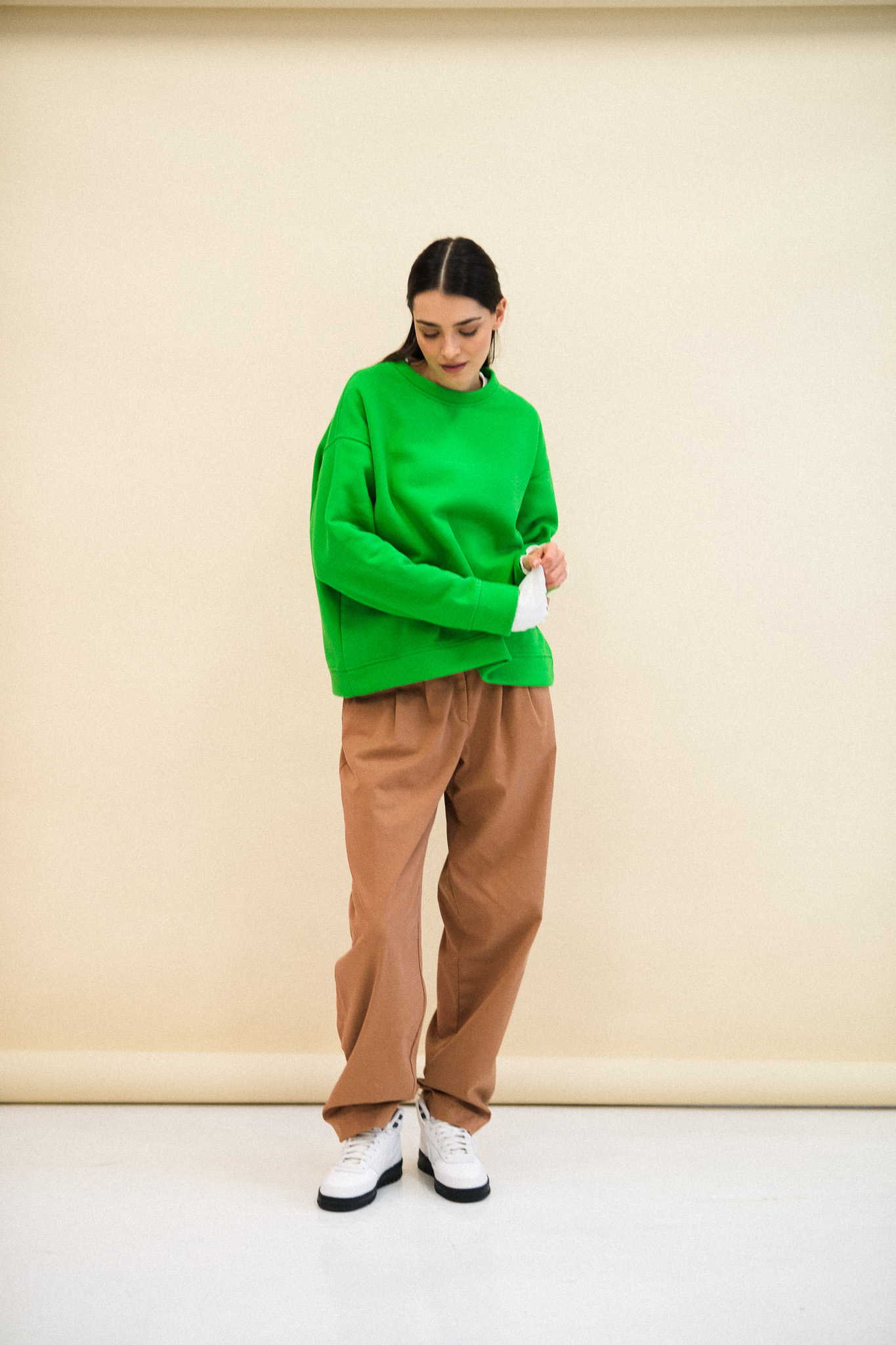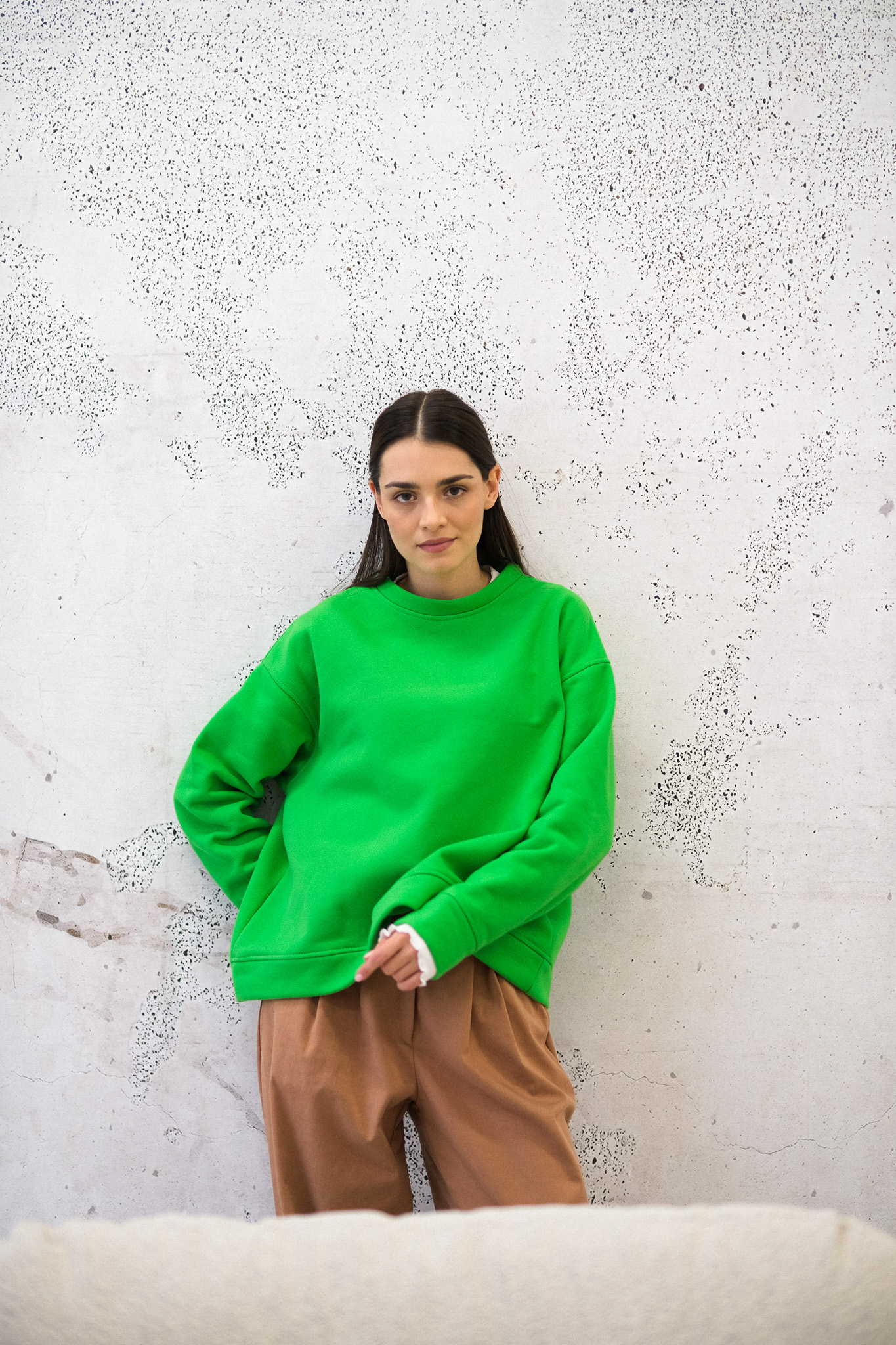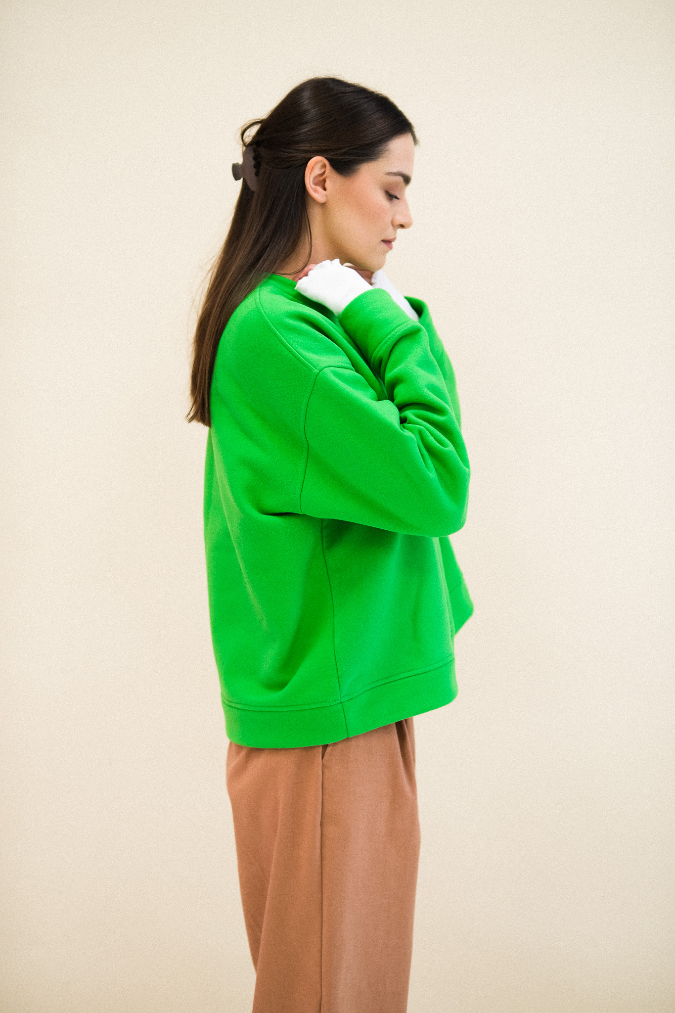 Delikatnie oversizowa bluza PARADISE, uszyta jest z jakościowej dresówki SKIN PEACH, z misiem w środku. Materiał jest mięsisty i pięknie trzyma formę. Bluza wykończona jest ściągaczem. Bluza jest totalnie klasyczna, ale ten kolor z pewnością Cię urzeknie. Ciepła, soczysta zieleń idealnie skomponuje się z brązami i jeansami.
