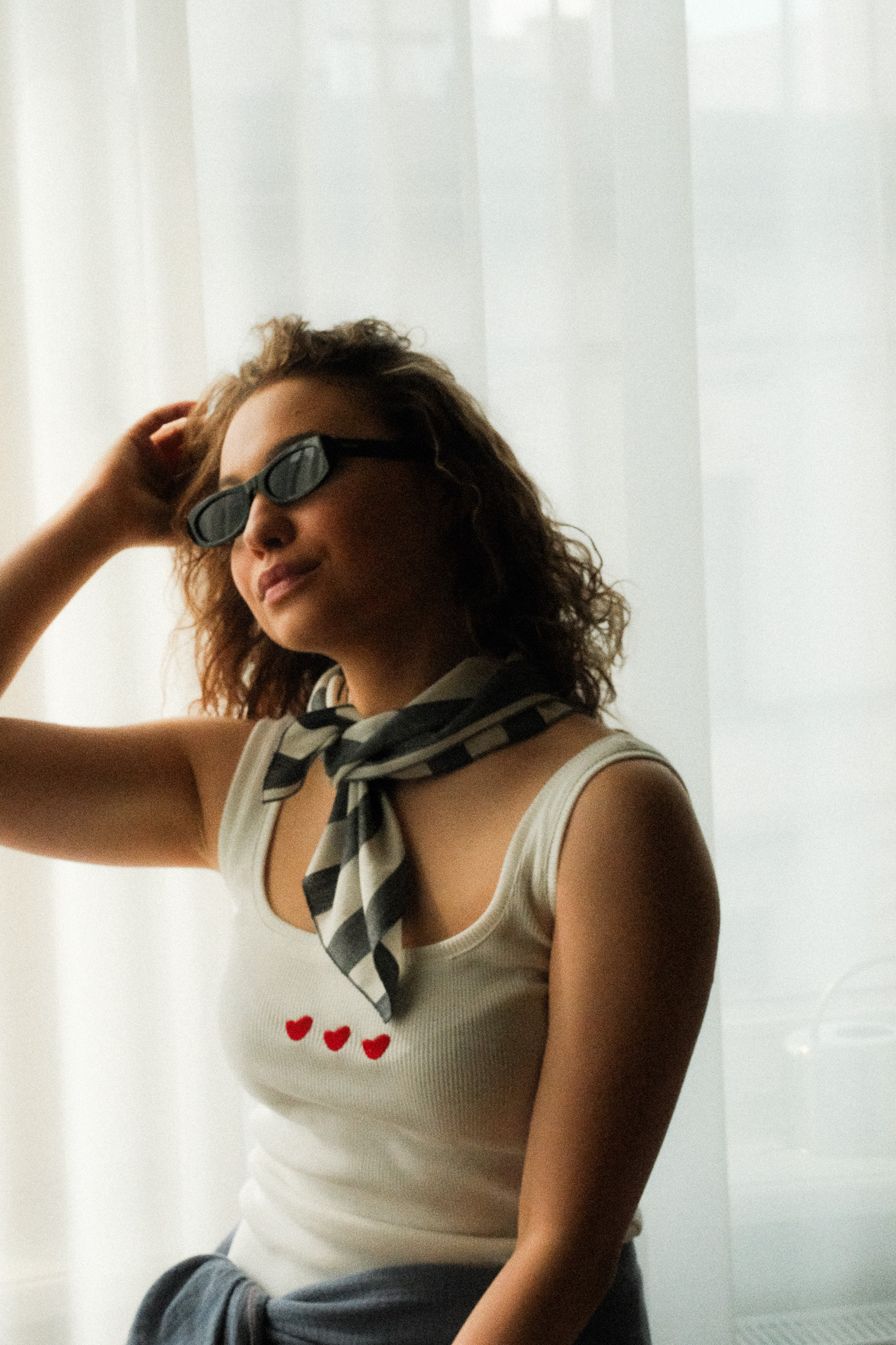Twoje letnie akcesorium numer jeden! Chusta “Retro Vibe” to kropka nad “i” każdej stylizacji. Niezależnie od tego, czy chcesz dodać szyku plażowemu lookowi, czy szukasz sposobu na szybki i efektowny “bad hair day”, ta chusta stanie się Twoim ulubionym gadżetem.